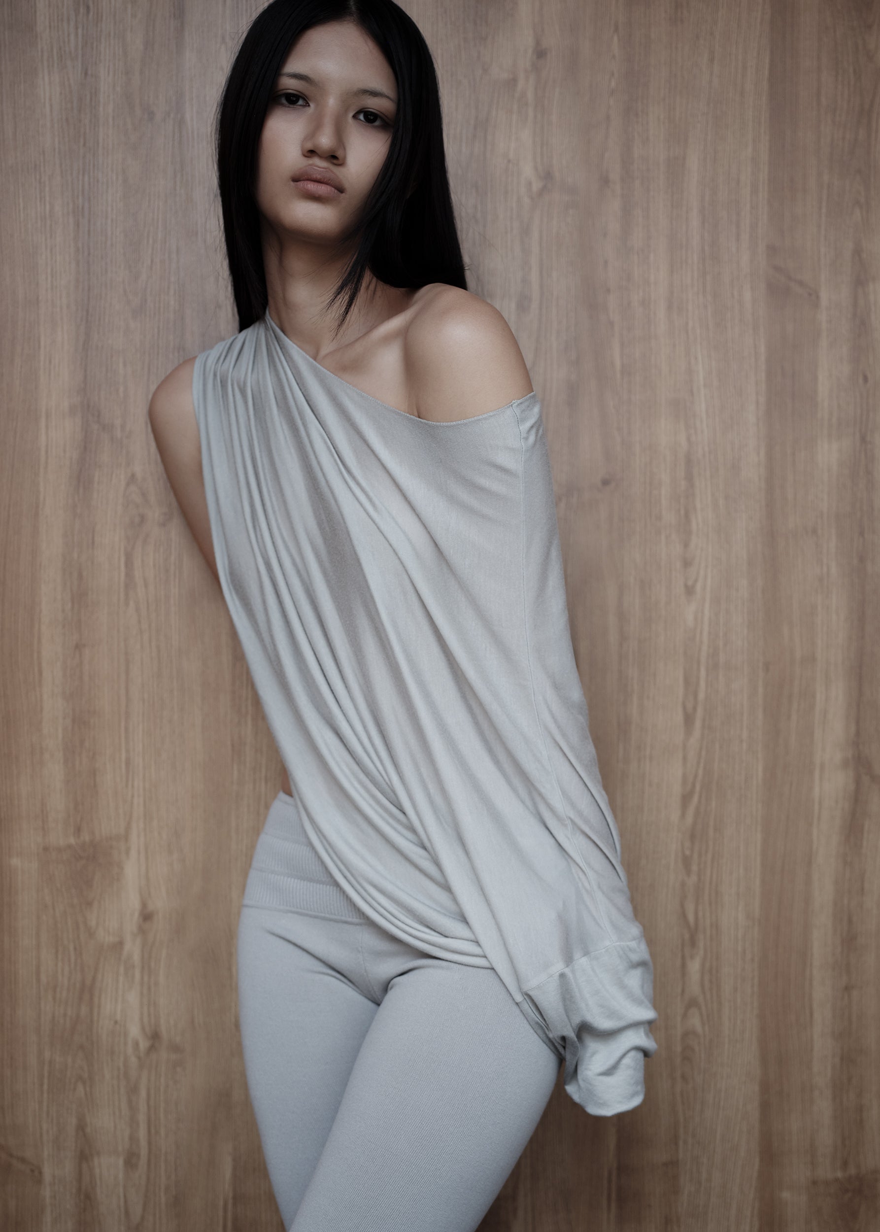 Draped gathered top in buttery soft modal fabric with hand pleated details.