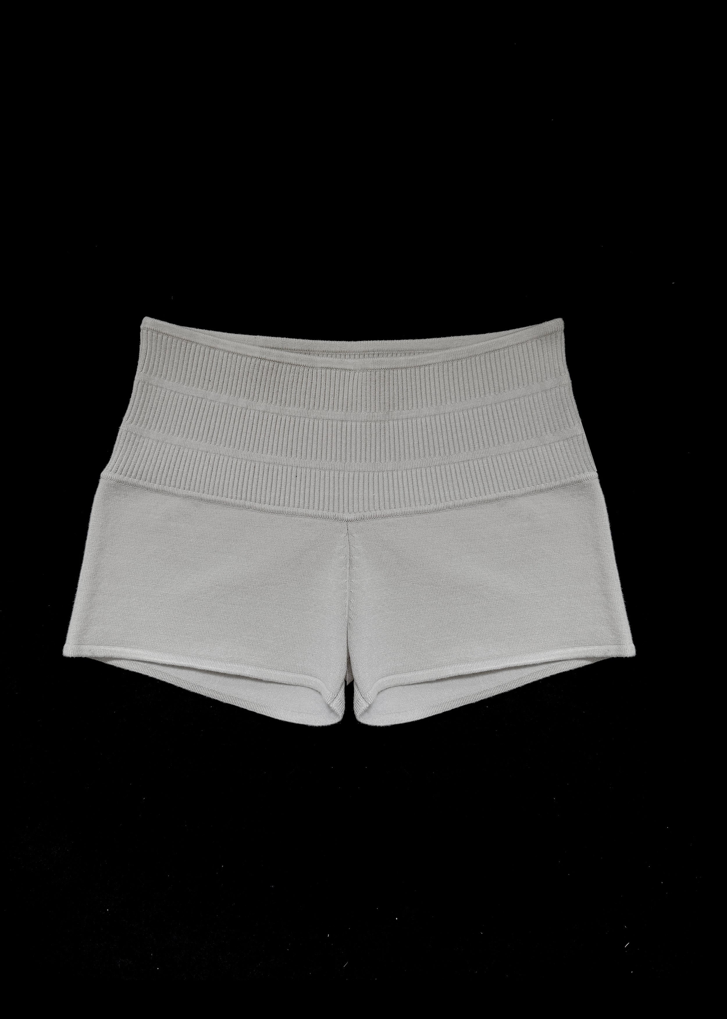 Soft, easy shorts with a tri-layer ribbed waistband inspired by goddess stone statues.